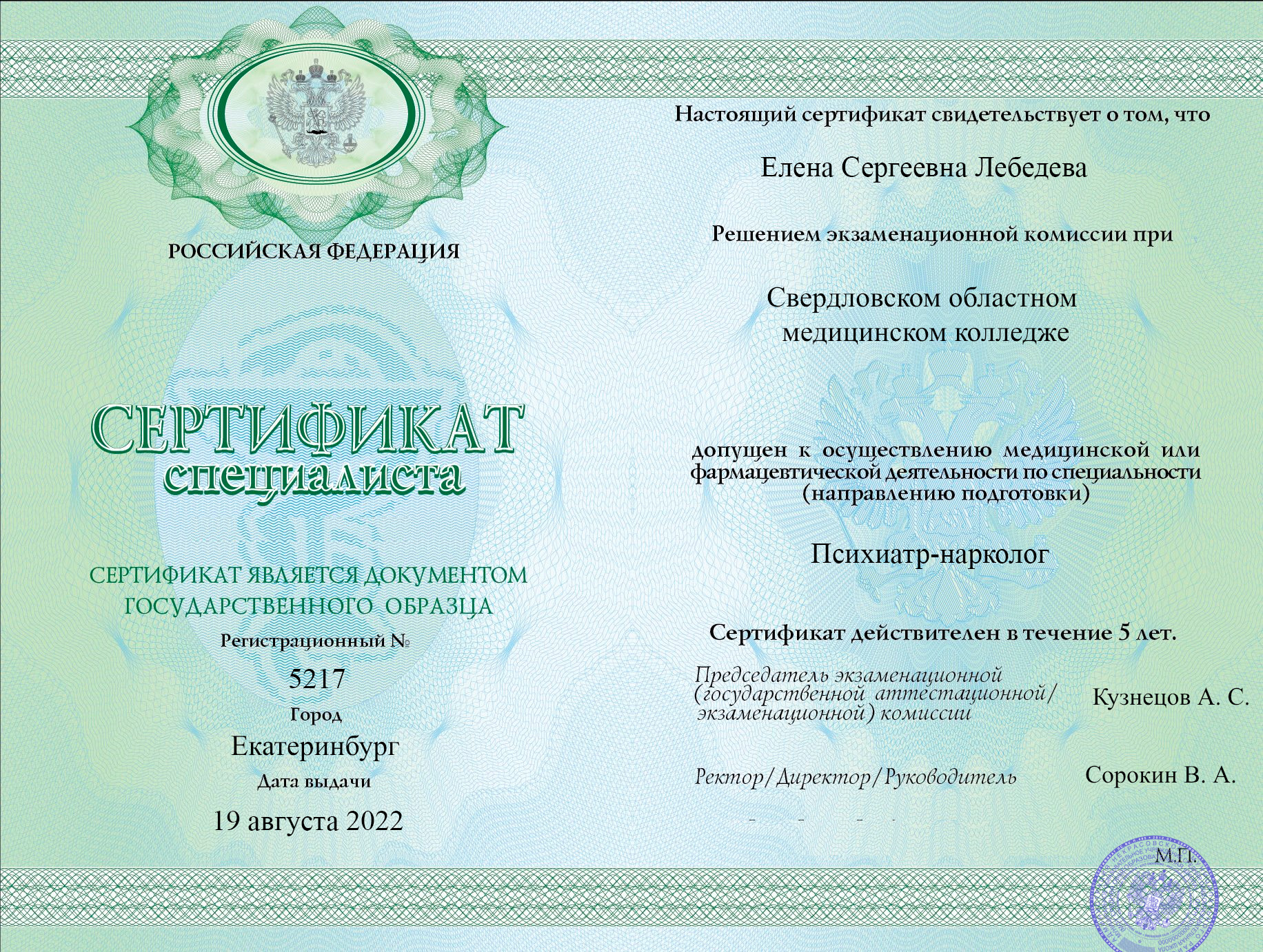 Елена Сергеевна Лебедева врач нарколог клиники доктора Стукаловой в Покачах